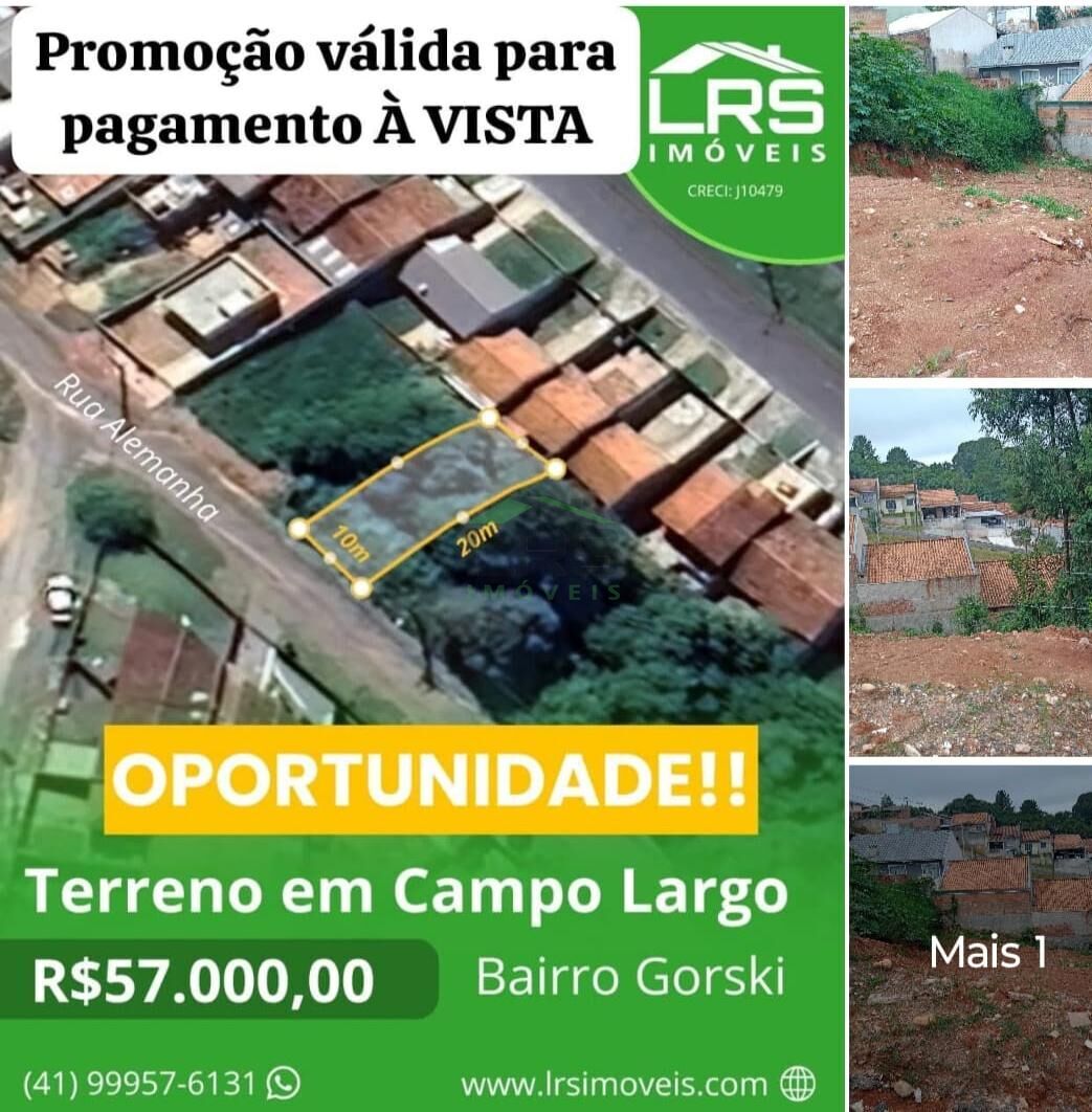 Excelente oportunidade de investimento! Terreno lote à venda no bairro Conjunto Habitacional Monsenhor Francisco Gorski, em Campo Largo-PR, com área total de 200m².